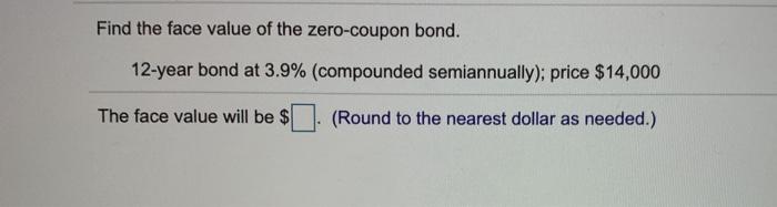 Solved a. A zero-coupon bond has face value of $1,000 and | Chegg.com This problem has been solved! a. A zero-coupon bond has face value of $1,000 and time to maturity of 4.1 years. If it is currently trading for $913, what is this zero-coupon bond's yield-to-maturity? Round to the hundredth of a percent. (e.g., 4.32% =4.32) b. A 7-year zero-coupon bond has a face value of $1,000.