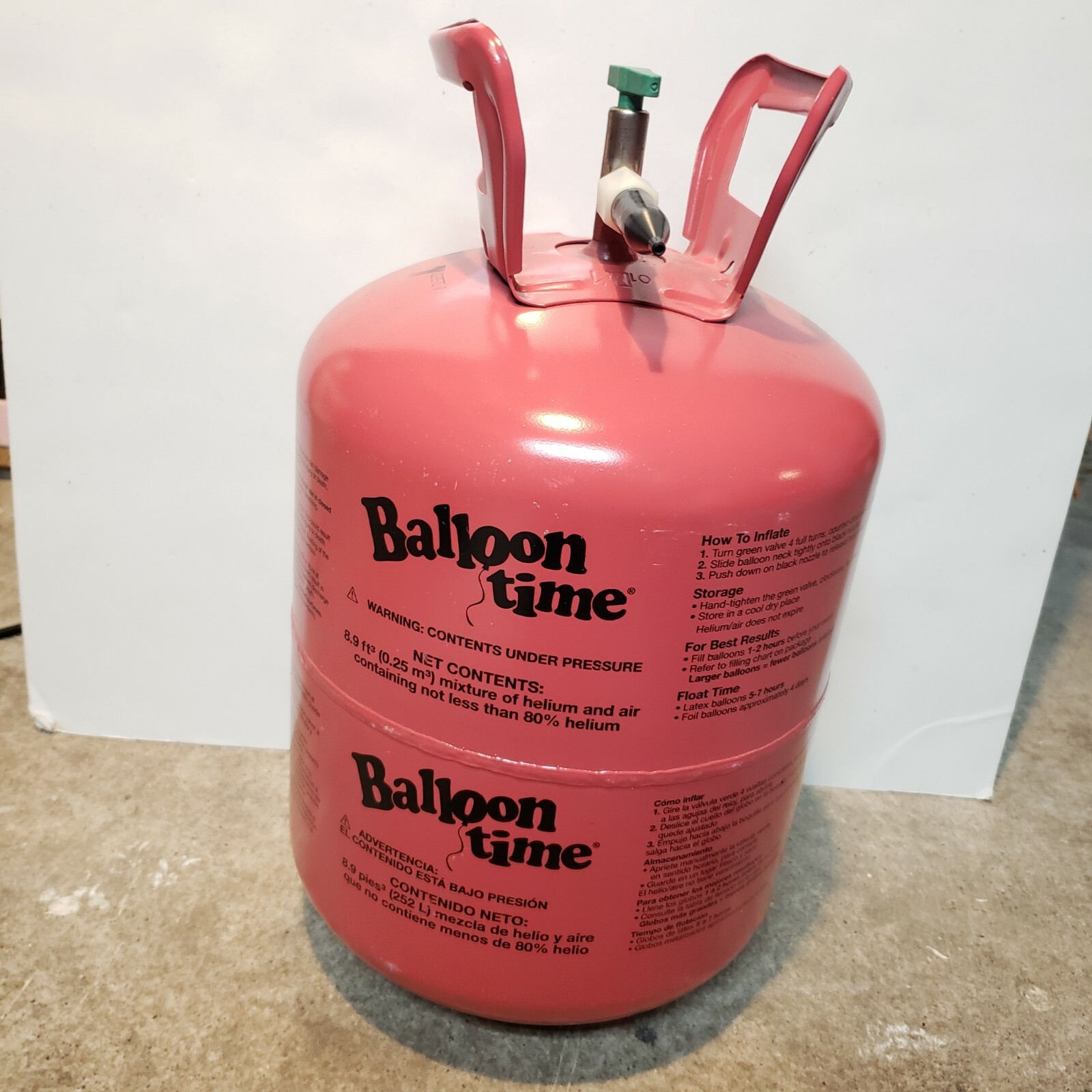 Balloon time helium tank - attatv.clevelandcustom.shop Kit includes heliumtankwith 8.9 ft3 helium/air mixture, 30 assorted color 9" latex balloonsand white ribbon. Inflate balloonsimmediately before event; average float timeis 5-7 hours. Twist open the green valve counterclockwise 4 full turns, slide a balloononto the black nozzle and press nozzle down to start heliumflow to fill the balloon.